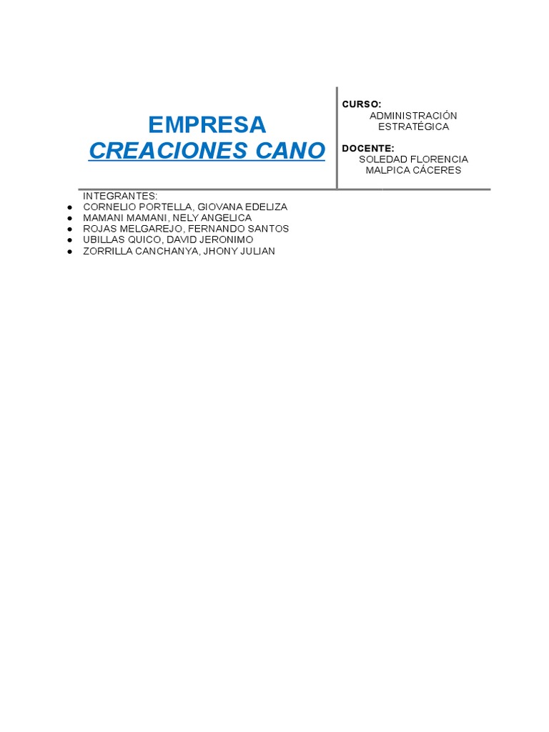 La empresa Creaciones Cano es una micro empresa fundada hace 17 aos