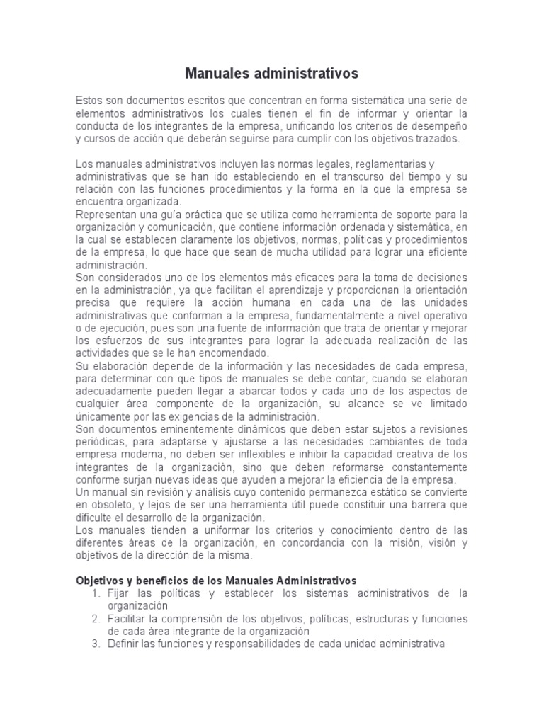 Los manuales administrativos son documentos que tienen como objetivo informar
