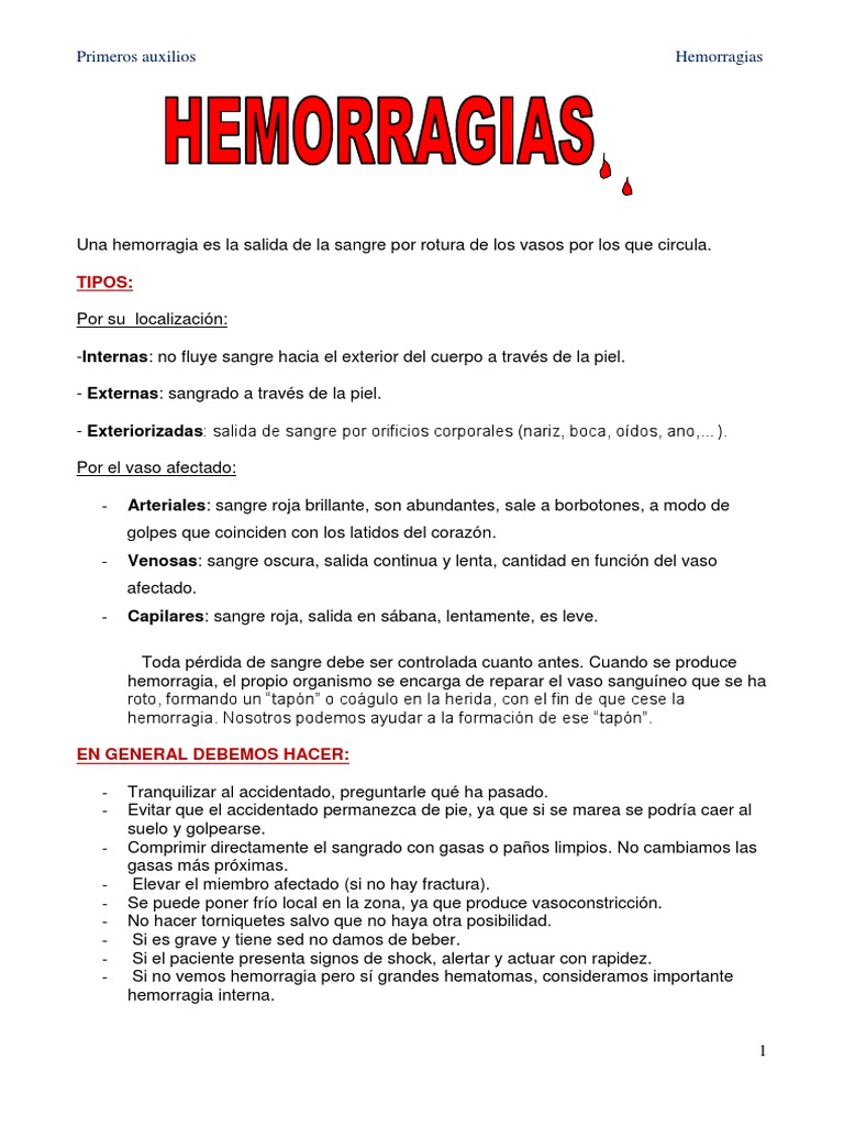 Toda prdida de sangre debe ser controlada cuanto antes. Cuando se produce