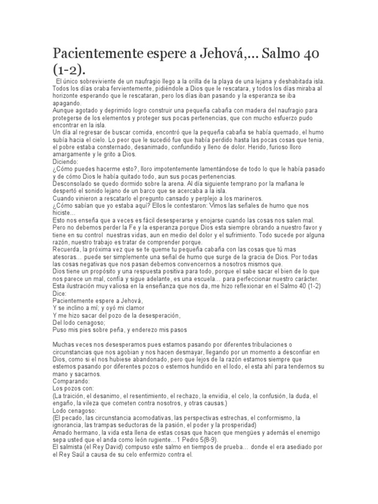 Pacientemente espere a Jehov, Salmo 40