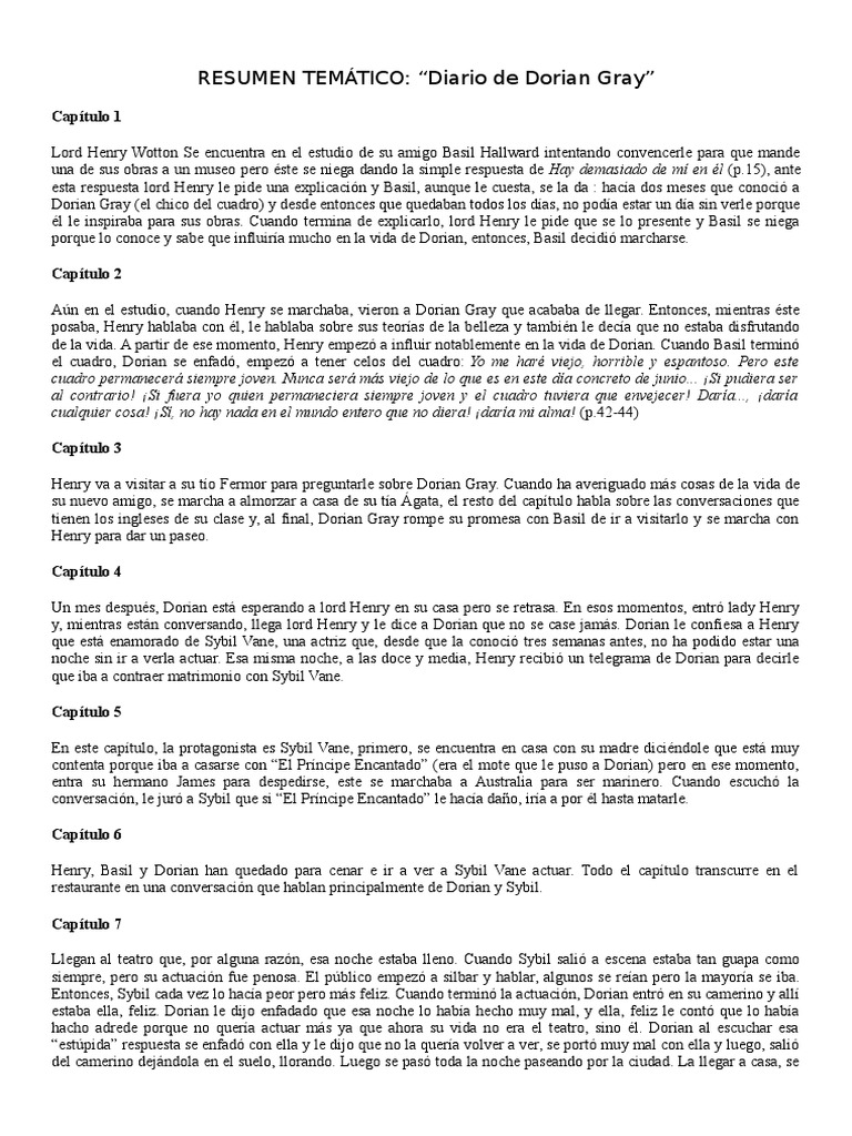 RESUMEN TEMTICO: Diario de Dorian Gray