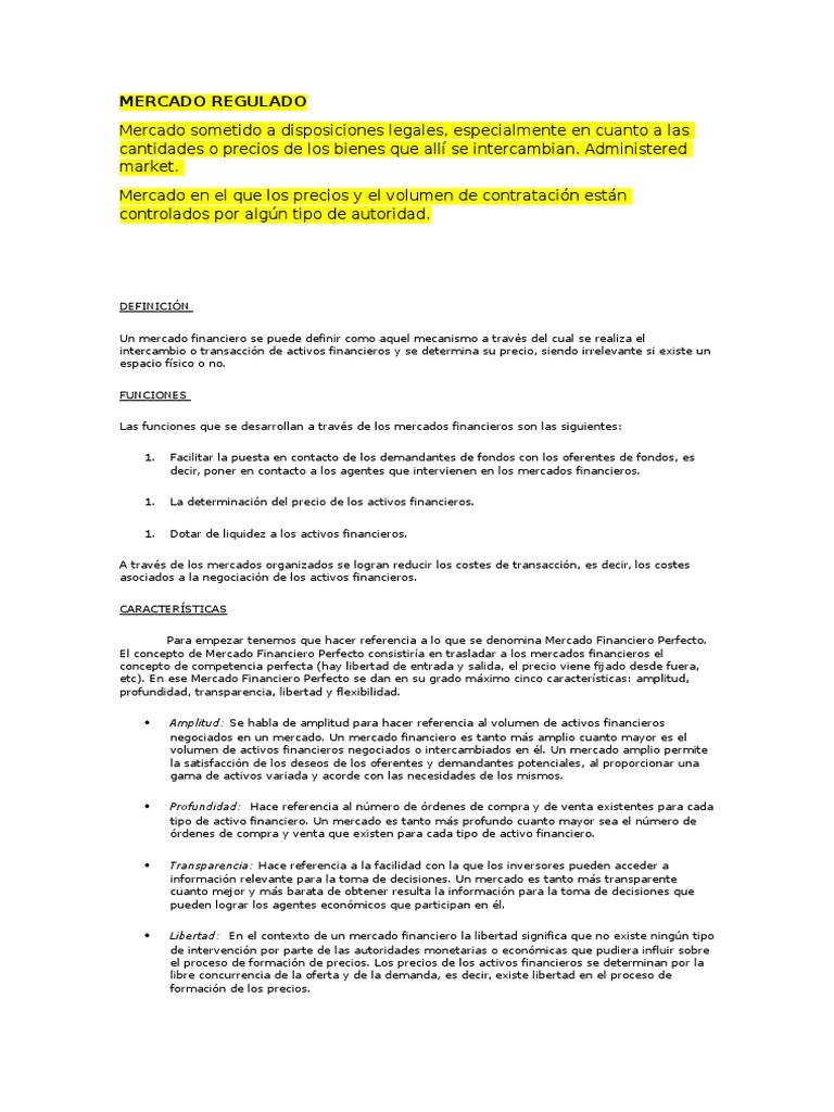 1- Mercados organizados: Son aquellos mercados en los que existe un conjunto de normas y