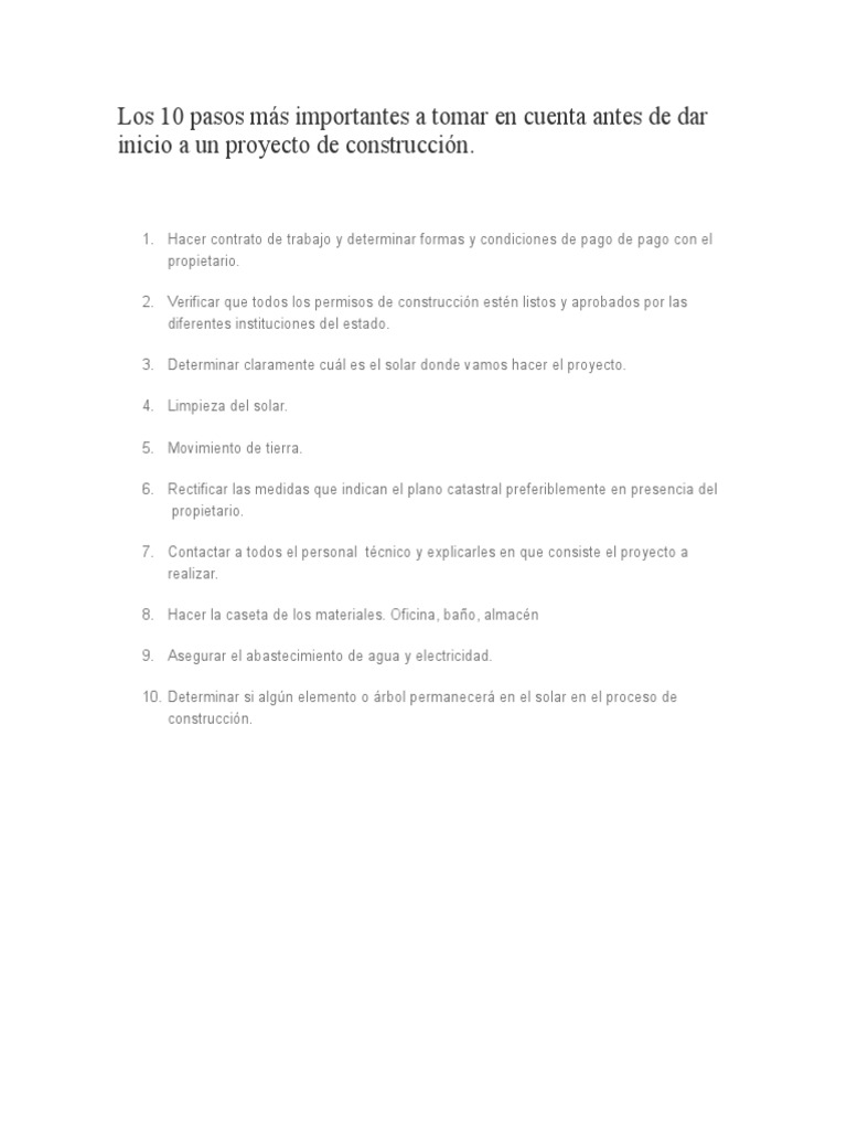 inicio a un proyecto de construccin.