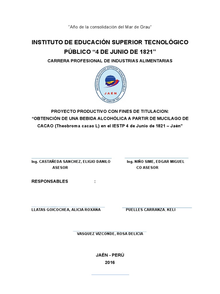 alternativa tecnolgica para aprovechar el muclago de cacao, el cual