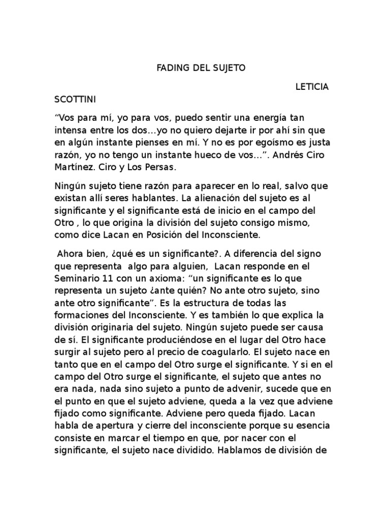 El sujeto en esa divisin, aparece, de un lado, producido por