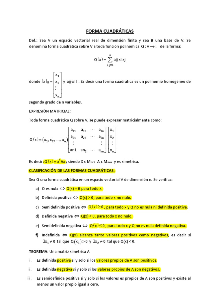 Es decir: Q x x t Ax ; siendo X Mnx1 A Mnxn y es simtrica.