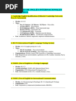 exmenes internacionales como el TOEFL, TOEIC, IELTS, FCE, CAE, PET, KET entre