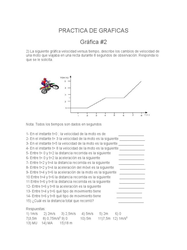 cambios de velocidad de una moto durante 8 segundos, responda lo que se le solicita.