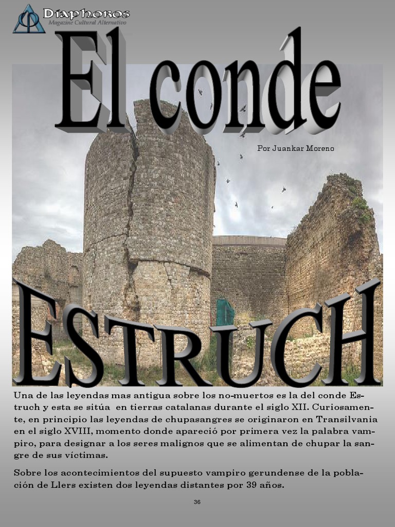 Una de las leyendas mas antigua sobre los no-muertos es la del conde Estruch y esta se sita en tierras catalanas durante el siglo XII. Curiosamente, en principio las leyendas de chupasangres se originaron en Transilvania