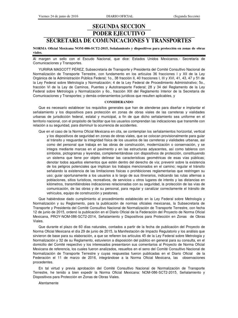 Federacin el 11 de marzo de 2016, integrndose a la Norma Oficial Mexicana, las observaciones