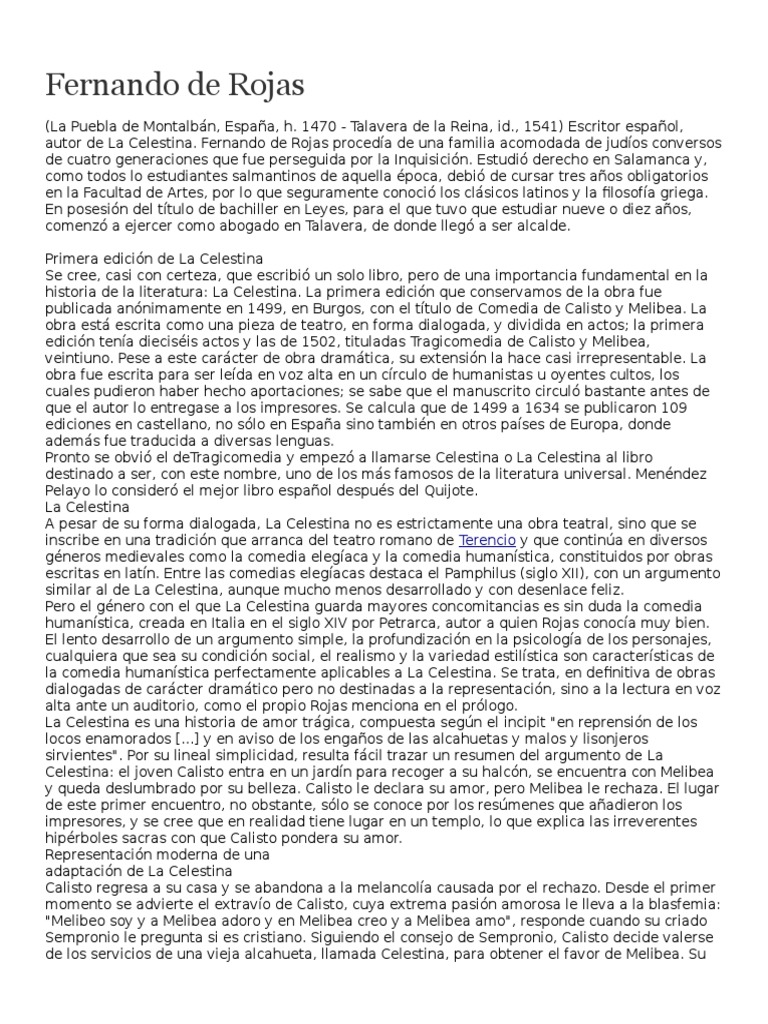 autor de La Celestina. Fernando de Rojas proceda de una familia acomodada de judos conversos