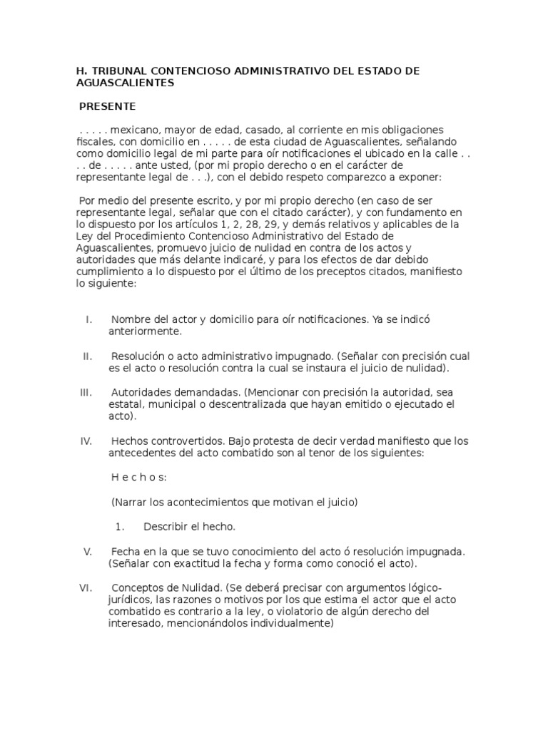 Aguascalientes, promuevo juicio de nulidad en contra de los actos y