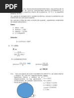 (k=0.01 W/mK) de 3.5 cm de espesor. La temperatura de la superficie interior es de