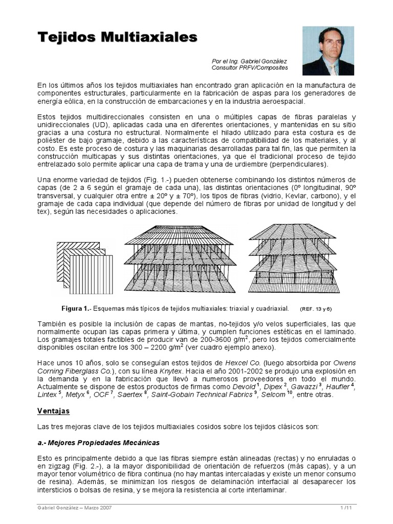 En los ltimos aos los tejidos multiaxiales han encontrado gran aplicacin en la manufactura de