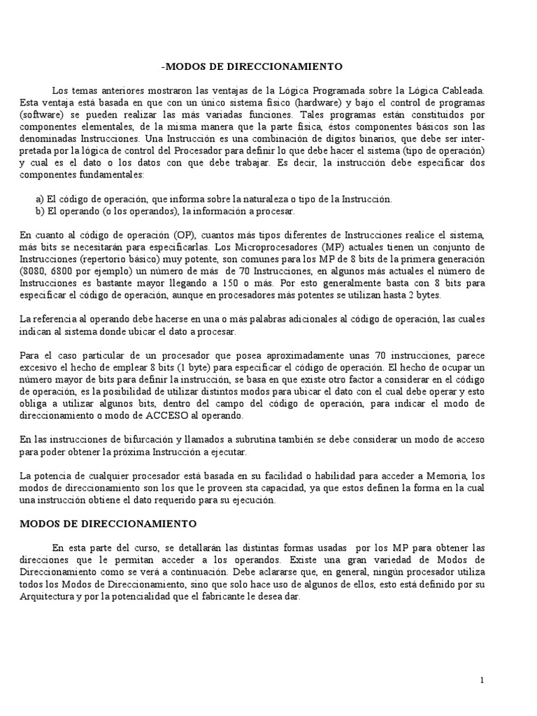 determinados modos de direccionamiento, por lo tanto el programador deber elegir entre los posibles el