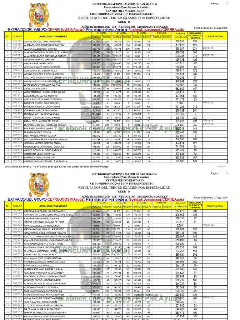 RESULTADOS DEL TERCER EXAMEN POR ESPECIALIDAD