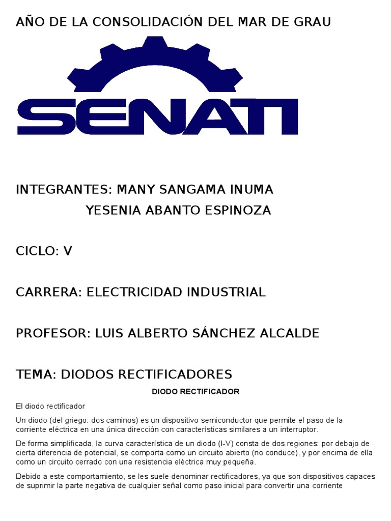 El diodo ms antiguo y utilizado es el diodo rectificador que conduce en un sentido, pero se opone a la