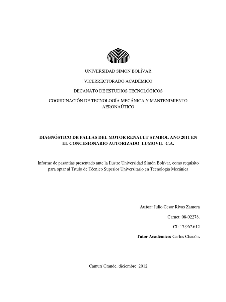 DIAGNSTICO DE FALLAS DEL MOTOR RENAULT SYMBOL AO 2011 EN EL