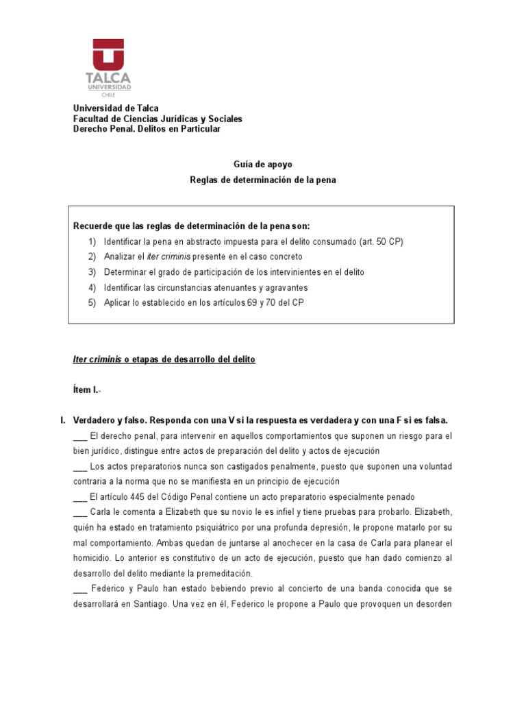 b) Refirase a los posibles problemas de la teora del delito presentes