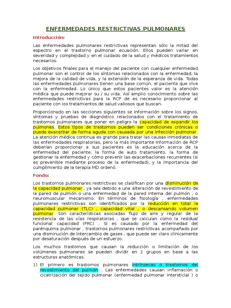 La enfermedad pulmonar restrictiva es un trastorno crnico que causa una