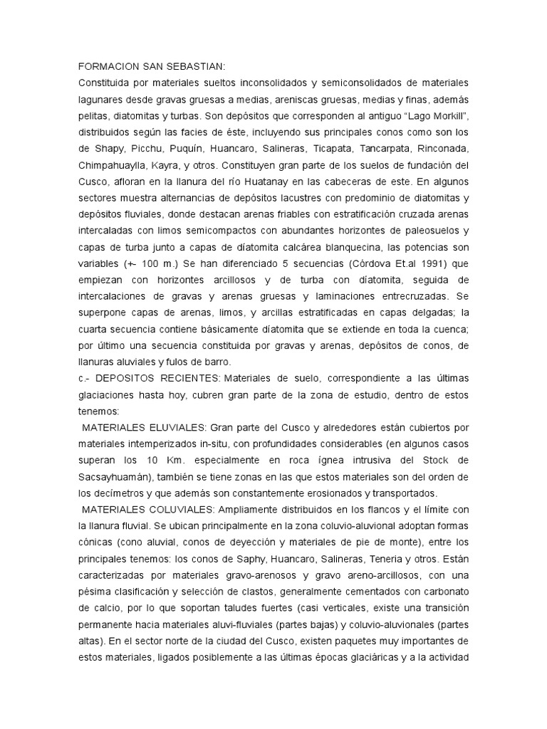 MATERIALES ELUVIALES: Gran parte del Cusco y alrededores estn cubiertos por