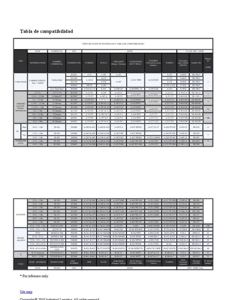 ESPECIFICACION DE MATERIALES Y TABLA DE COMPATIBILIDAD*