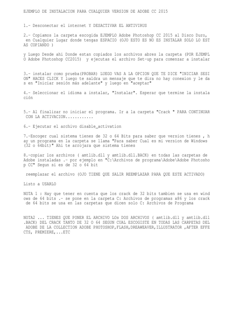 EJEMPLO DE INSTALACION PARA CUALQUIER VERSION DE ADOBE CC 2015