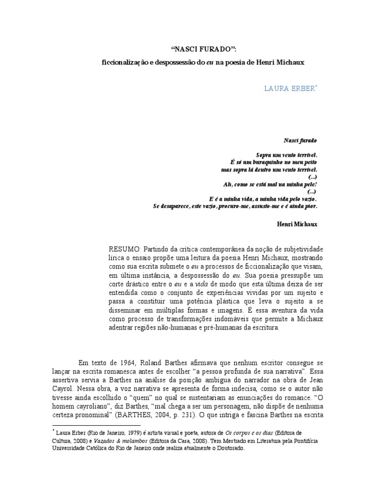lrica o ensaio prope uma leitura da poesia Henri Michaux, mostrando