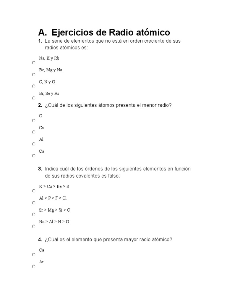 4. Indique cul es elemento ms electronegativo de la serie: Be, Ba, Ca y