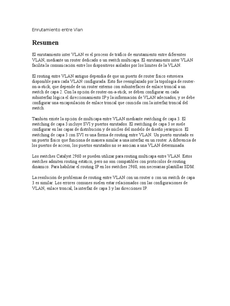 VLAN, mediante un router dedicado o un switch multicapa. El enrutamiento inter VLAN