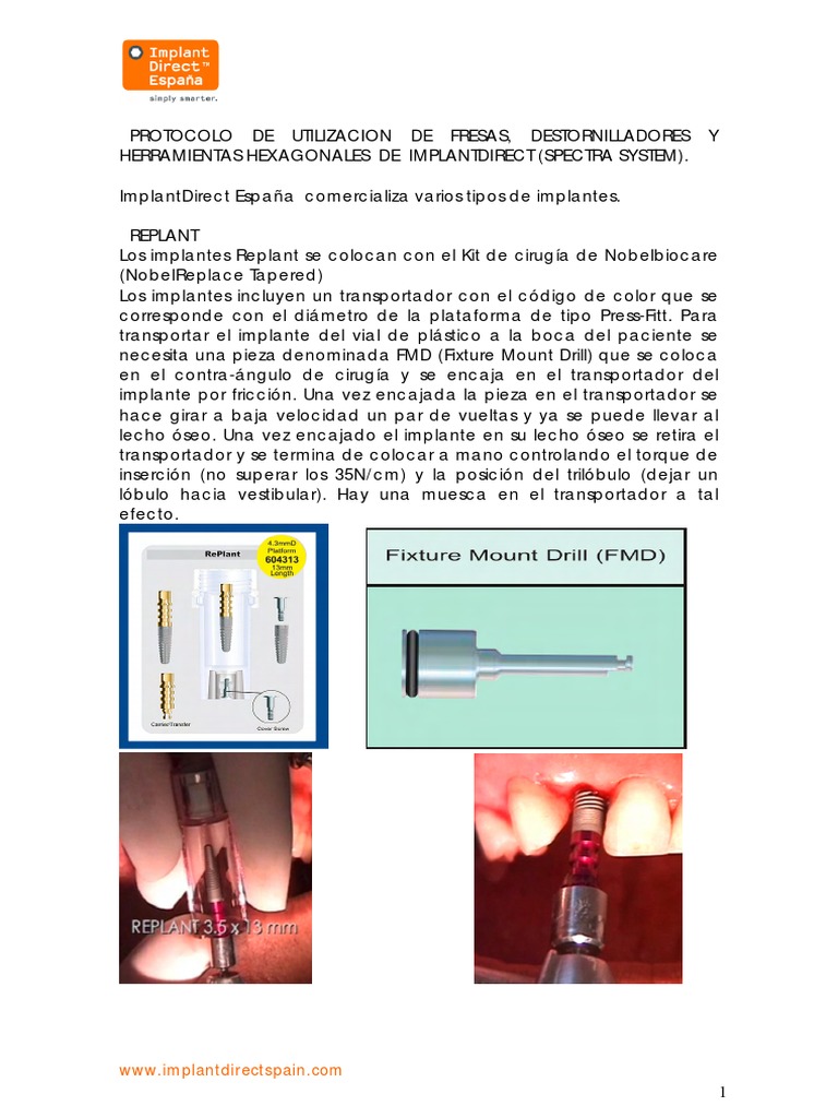 para la colocacin de todos los implantes REPLUS/REDIRECT/DIRECT/