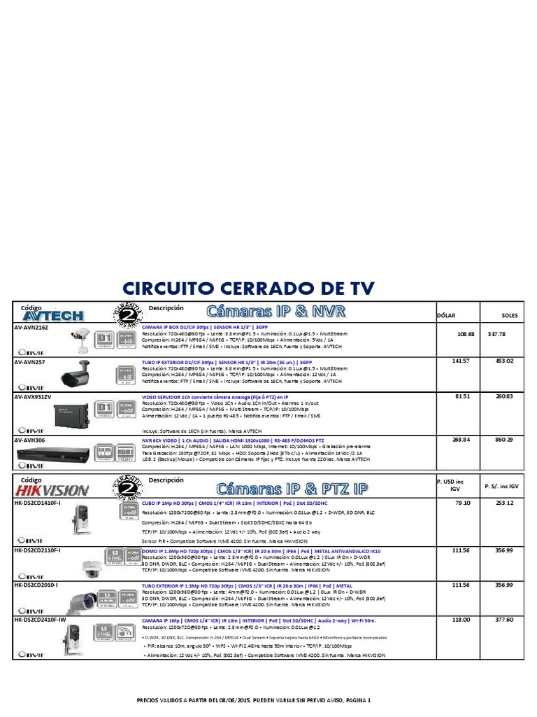 PRECIOS VALIDOS A PARTIR DEL 08/06/2015, PUEDEN VARIAR SIN PREVIO AVISO, PAGINA 1