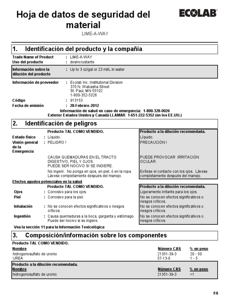 Hoja de datos de seguridad del