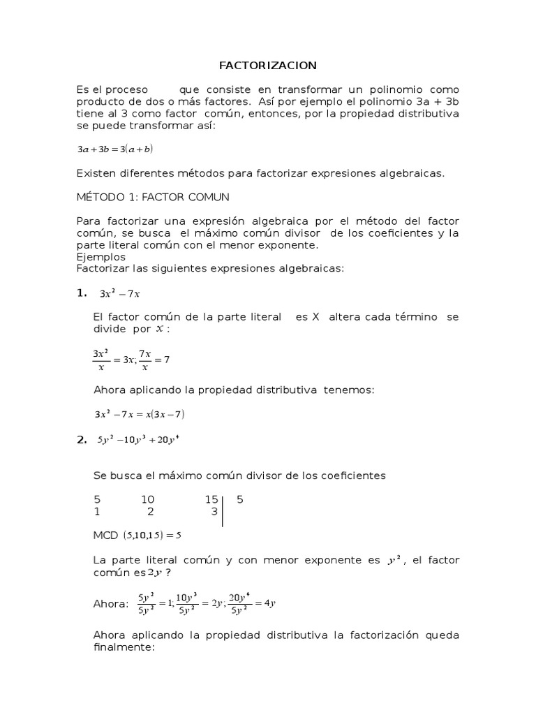 Existen diferentes mtodos para factorizar expresiones algebraicas.