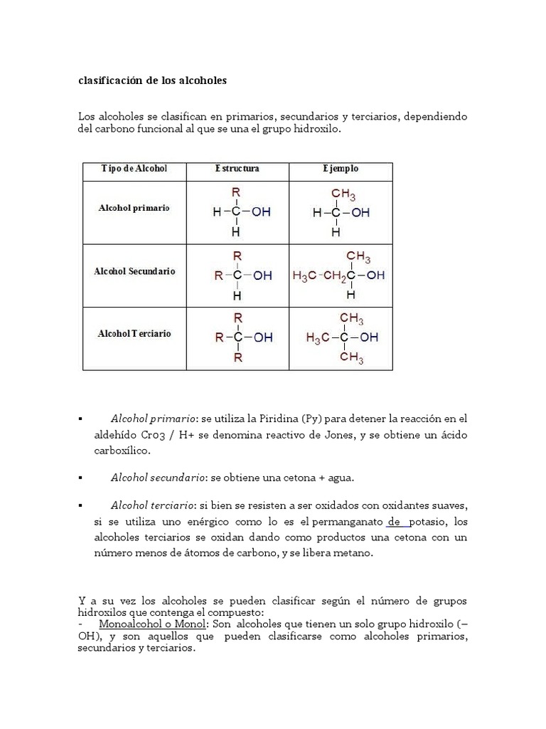 Los alcoholes se clasifican en primarios, secundarios y terciarios, dependiendo