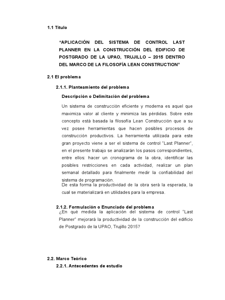 Last Planner mejorar en la productividad de la construccin