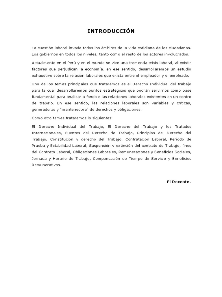 del Contrato Laboral, Obligaciones Laborales, Remuneraciones y Beneficios Sociales,