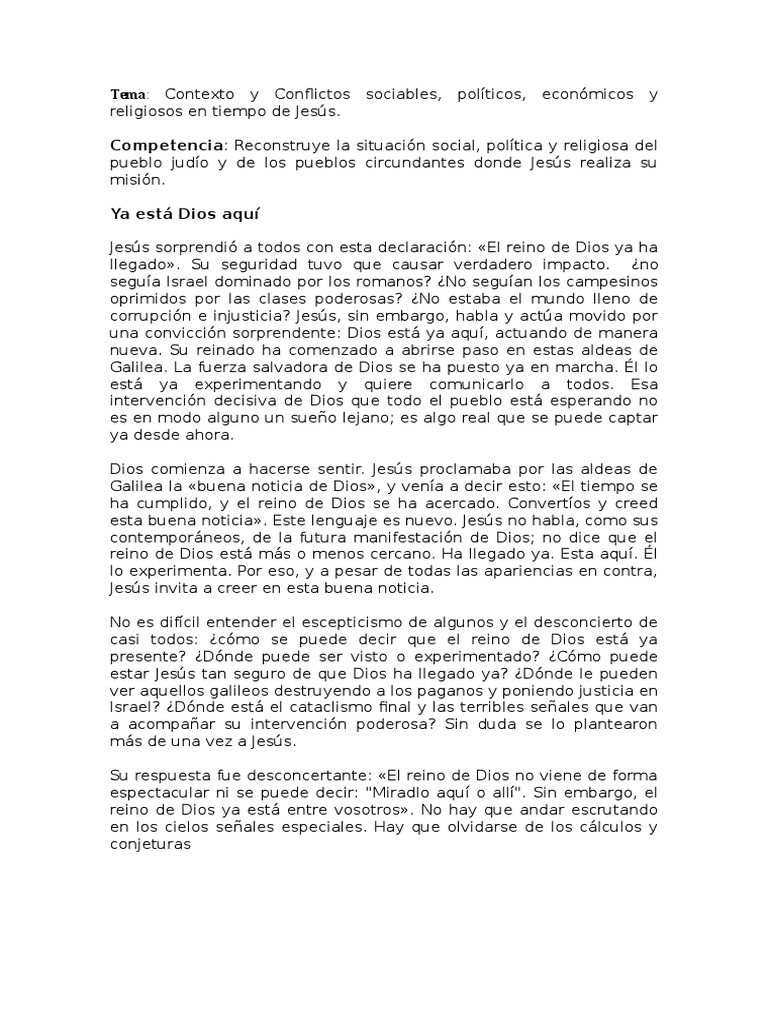 Tema: Contexto y Conflictos sociables, polticos, econmicos y