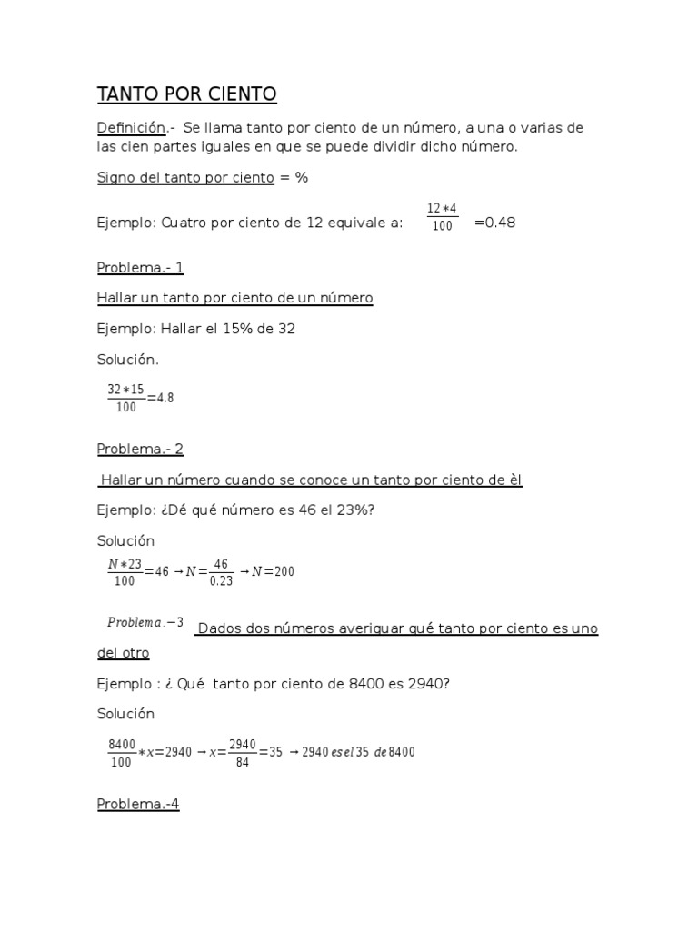 Definicin.- Se llama tanto por ciento de un nmero, a una o varias de