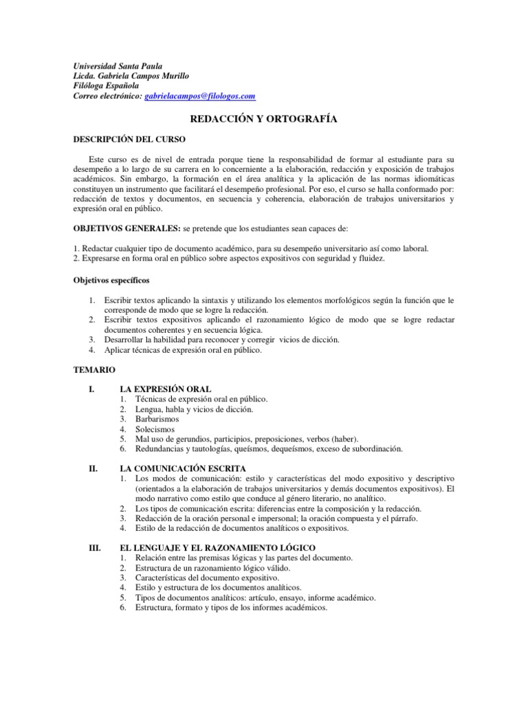 1. Redactar cualquier tipo de documento académico, para su desempeño universitario así como laboral.