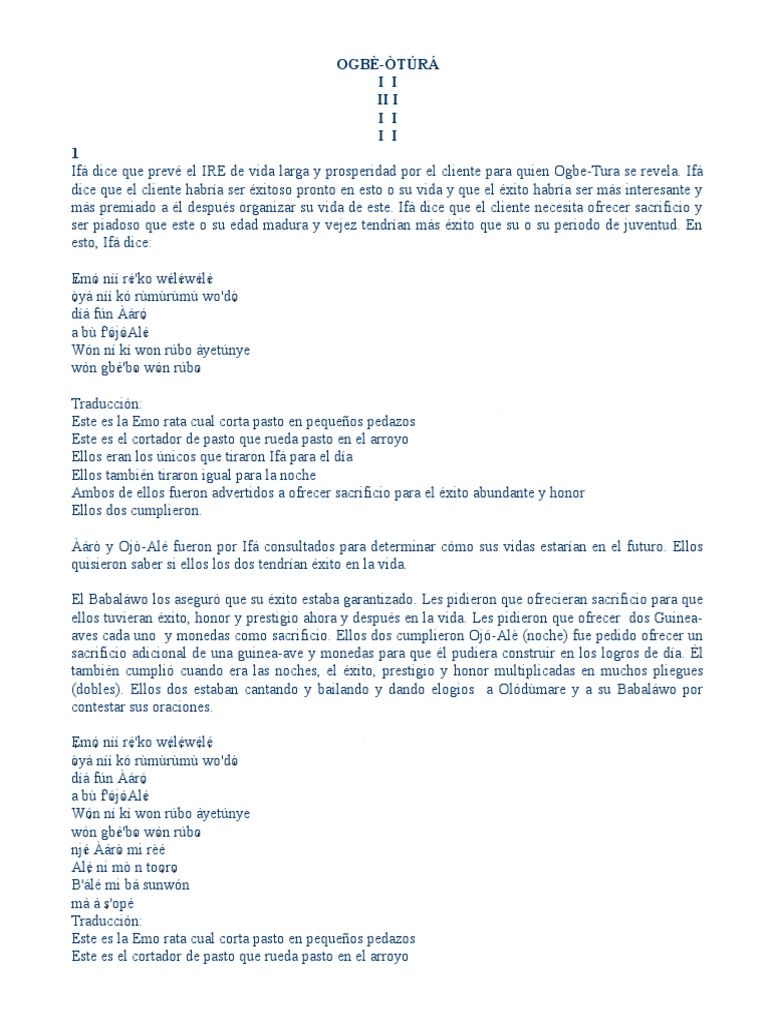 El Babalwo los asegur que su xito estaba garantizado. Les pidieron que ofrecieran sacrificio para que