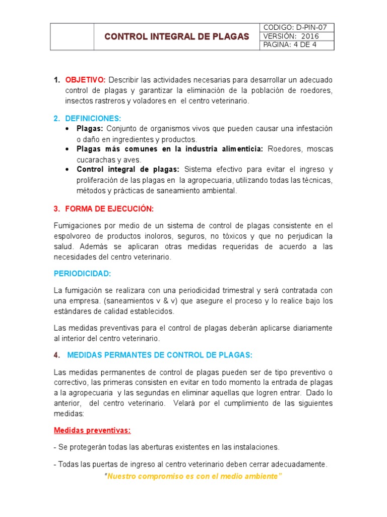 control de plagas y garantizar la eliminacin de la poblacin de roedores,