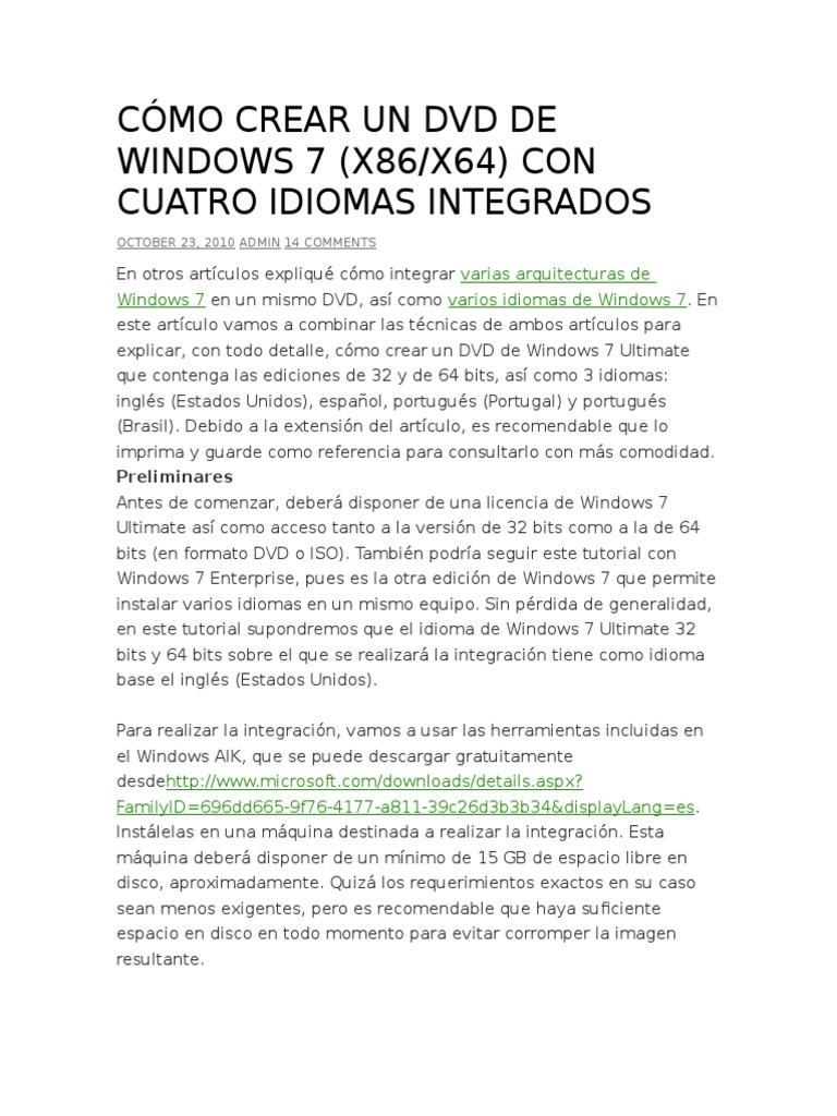 explicar, con todo detalle, cmo crear un DVD de Windows 7 Ultimate