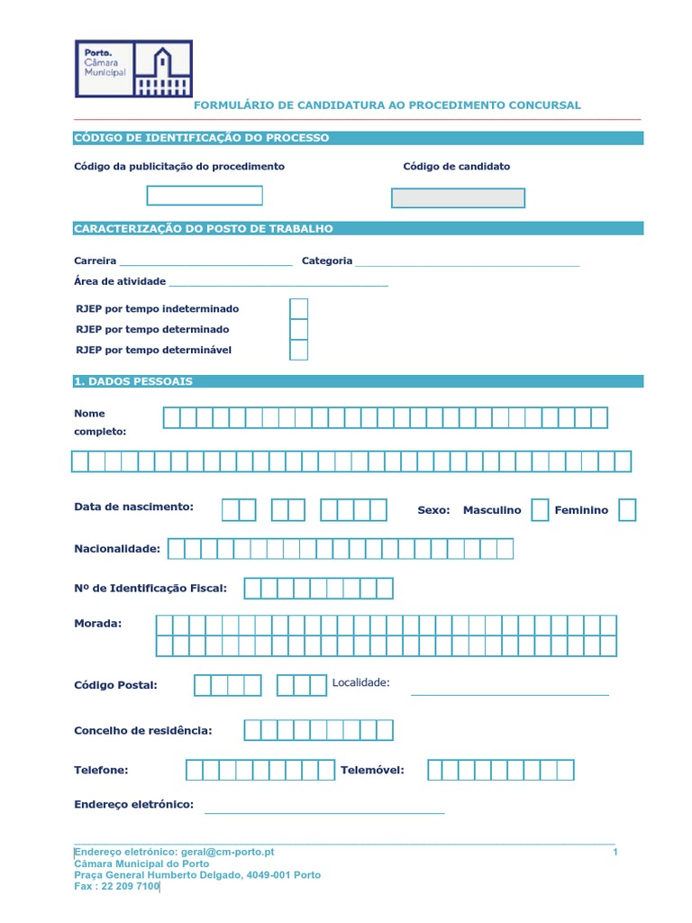 Endereço eletrónico: geral@cm-porto.pt Câmara Municipal do Porto Praça General Humberto Delgado, 4049-001 Porto Fax : 22 209 7100