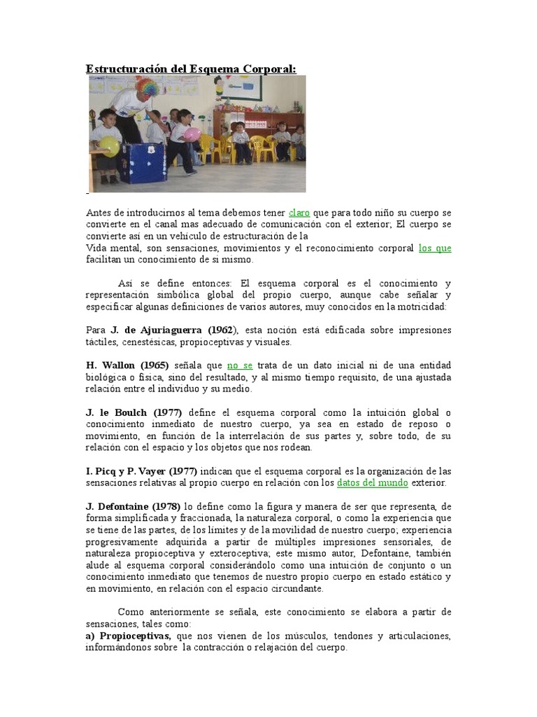 I. Picq y P. Vayer (1977) indican que el esquema corporal es la organizacin de las