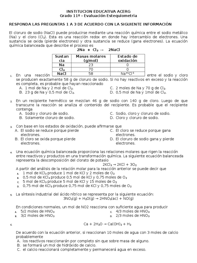 Grado 11 - Evaluacin Estequiometria