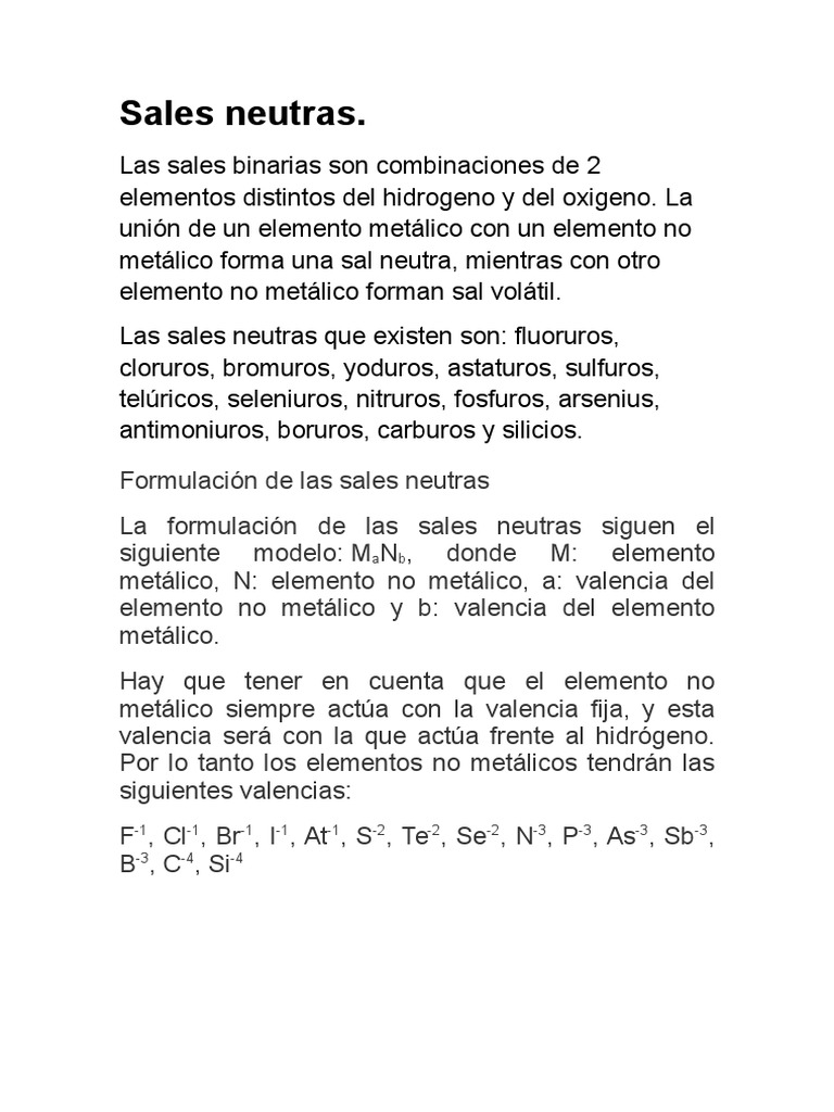 Formulacin de las sales neutras