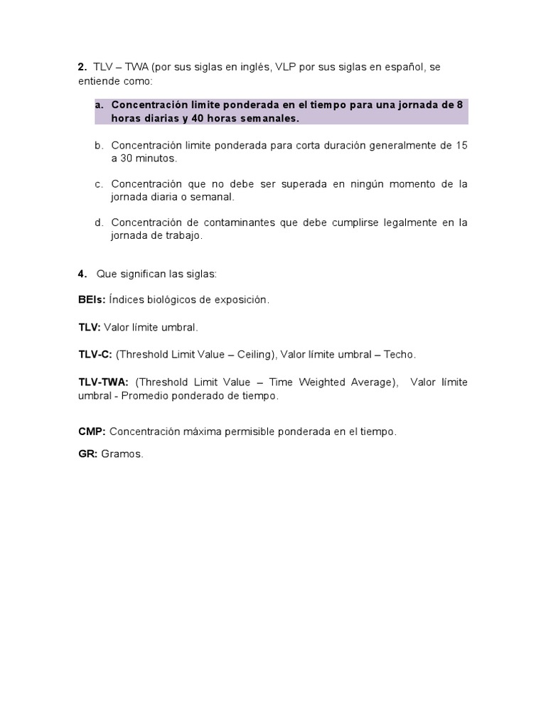 a. Concentracin limite ponderada en el tiempo para una jornada de 8