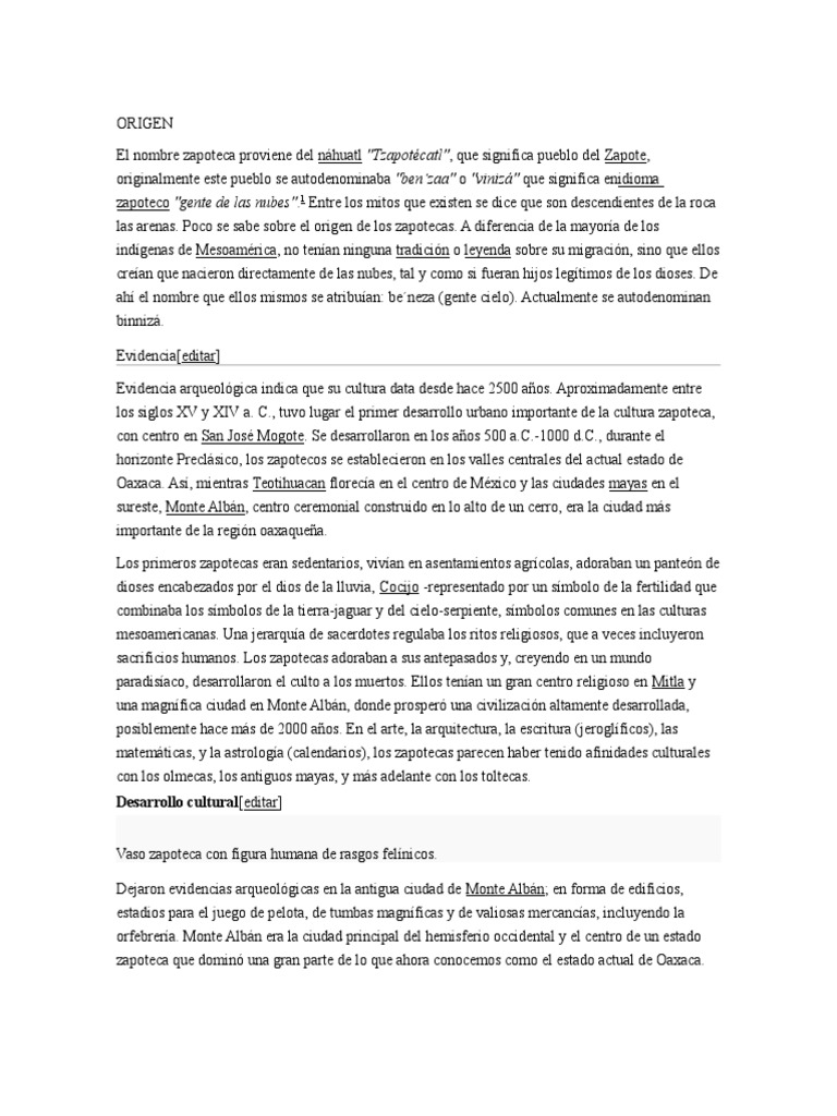 las arenas. Poco se sabe sobre el origen de los zapotecas. A diferencia de la mayora de los