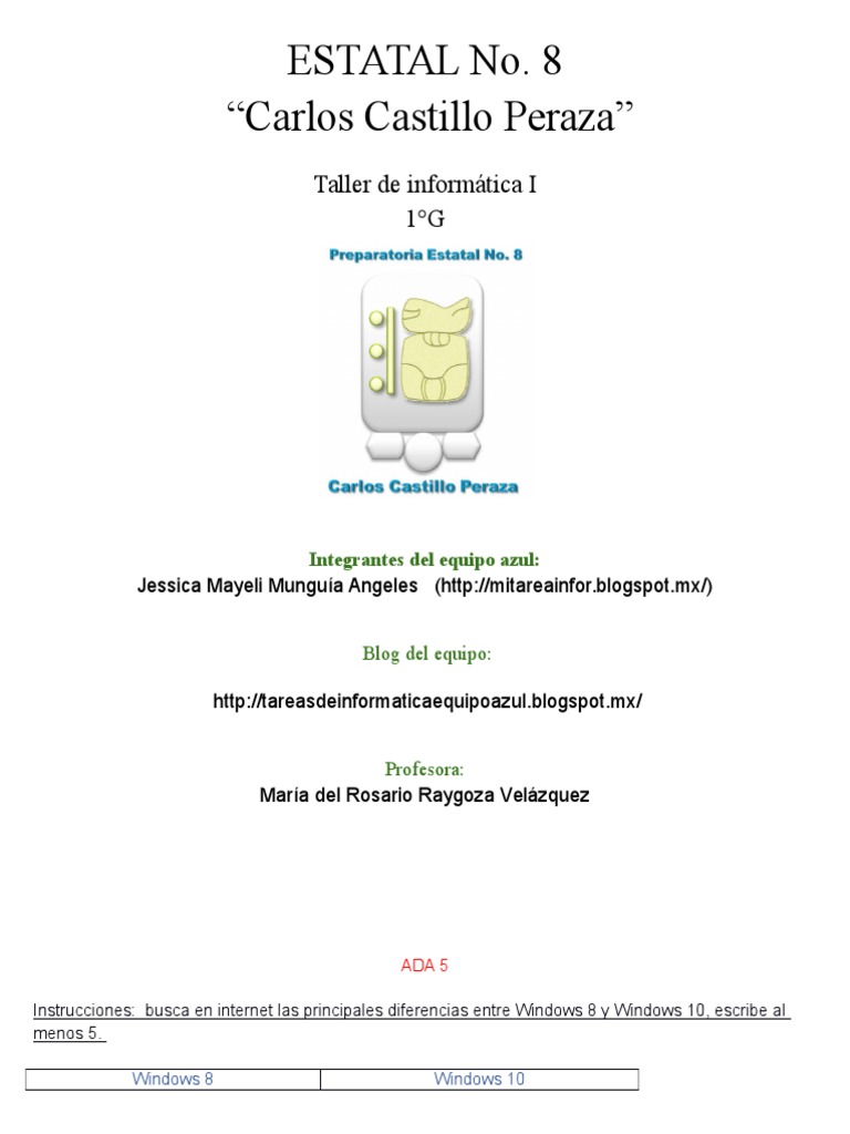Instrucciones: busca en internet las principales diferencias entre Windows 8 y Windows 10, escribe al